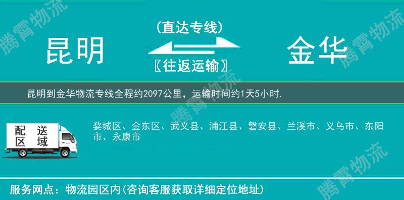歡迎來電咨詢昆明到金華物流專線相關信息,天天發(fā)貨,全程3-7天可將您的貨物送至金華全市:蘭溪市、婺城區(qū)、義烏市、永康市、武義縣、浦江縣、金東區(qū)、磐安縣、東陽市、。